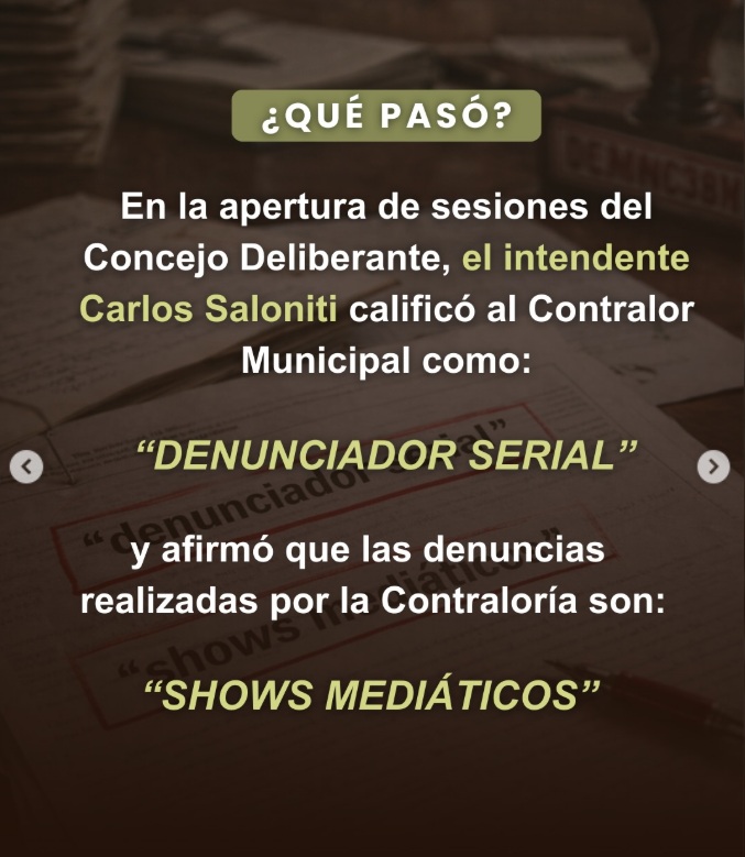 Así calificó el intendente Carlos Saloniti al Contralor Municipal durante la apertura de sesiones del Concejo Deliberante.